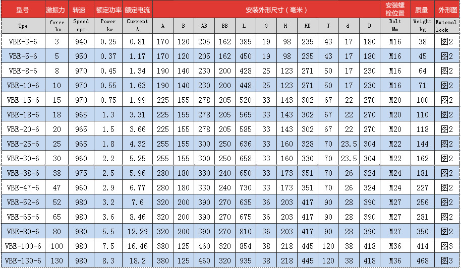 欣佳宏VBE振動電機偏心塊易調(diào)節(jié),多電壓,功率可選。 欣佳宏VBE出口大型振動馬達采用耐高溫品牌純銅漆包線,全銅繞組,定子真空浸漆,保證絕緣等級。 欣佳宏VBE礦山專用震動電機采用特厚球墨鑄鐵外殼、散熱快、溫升低、耐震。 欣佳宏VBE振動電機機殼為精密鑄件,端蓋邊緣加有o型密封圈、全封閉結(jié)構(gòu)設(shè)計,最佳防塵防潮功能。 欣佳宏VBE振動馬達采用抗振專用電源線出線防護套、防電纜線長時間振動破壞。 固定澆鑄的接線盒使VBE振動電機具有較強的防水、絕緣、安全性能。 欣佳宏VBE系列震動電機為出口大型振動電機的代表,上市以來深受國內(nèi)外客戶的一致好評; | ![]() |